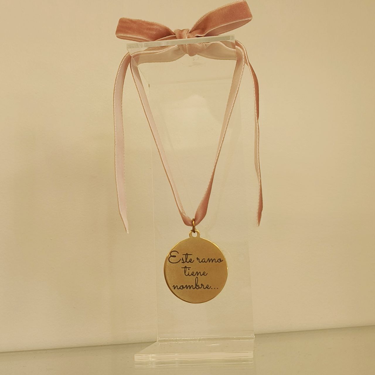 Esta medalla personalizada convierte tu ramo en un tributo de amor.