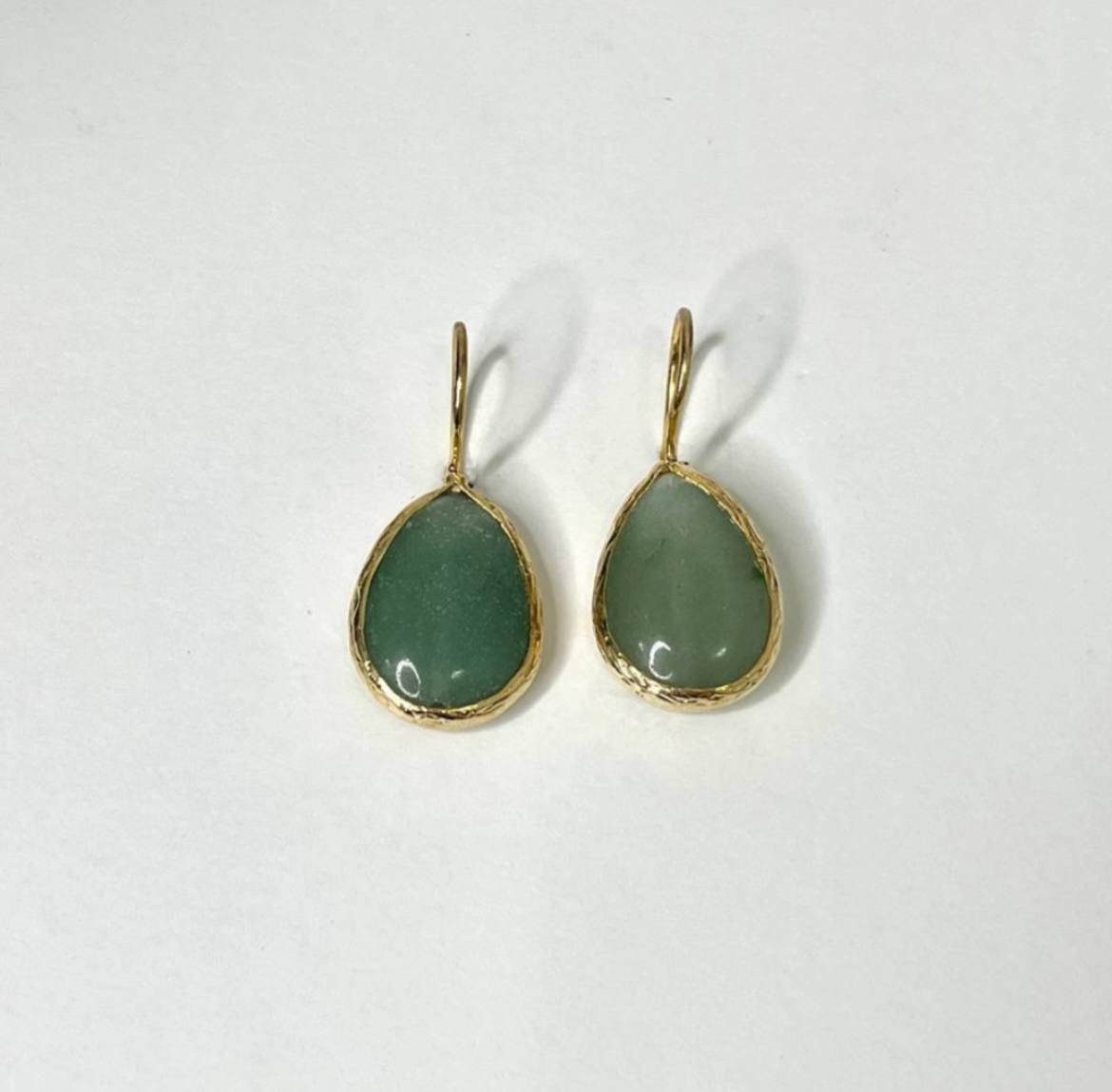 Pieza protagonista del brillo dorado del bronce bañado en oro que abraza una gota de cuarzo verde o blanco, creando el equilibrio perfecto entre frescura y sofisticación.